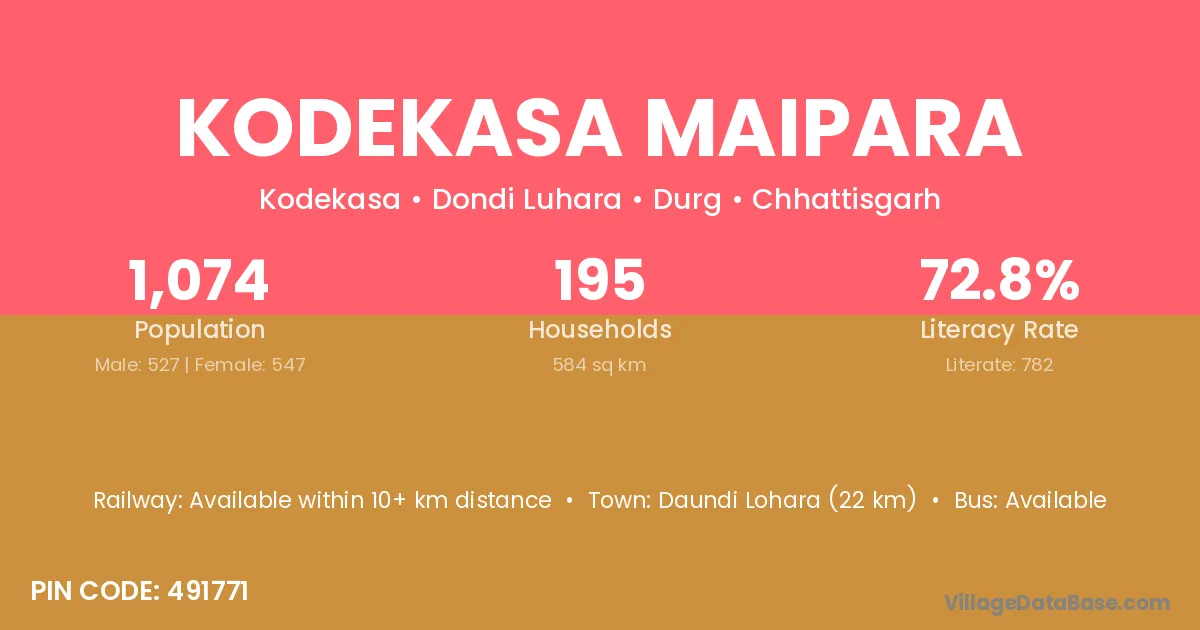 Daundi Lohara (22 km) is the nearest town to Kodekasa Maipara village for major economic activities and is located approximately 22 km away.