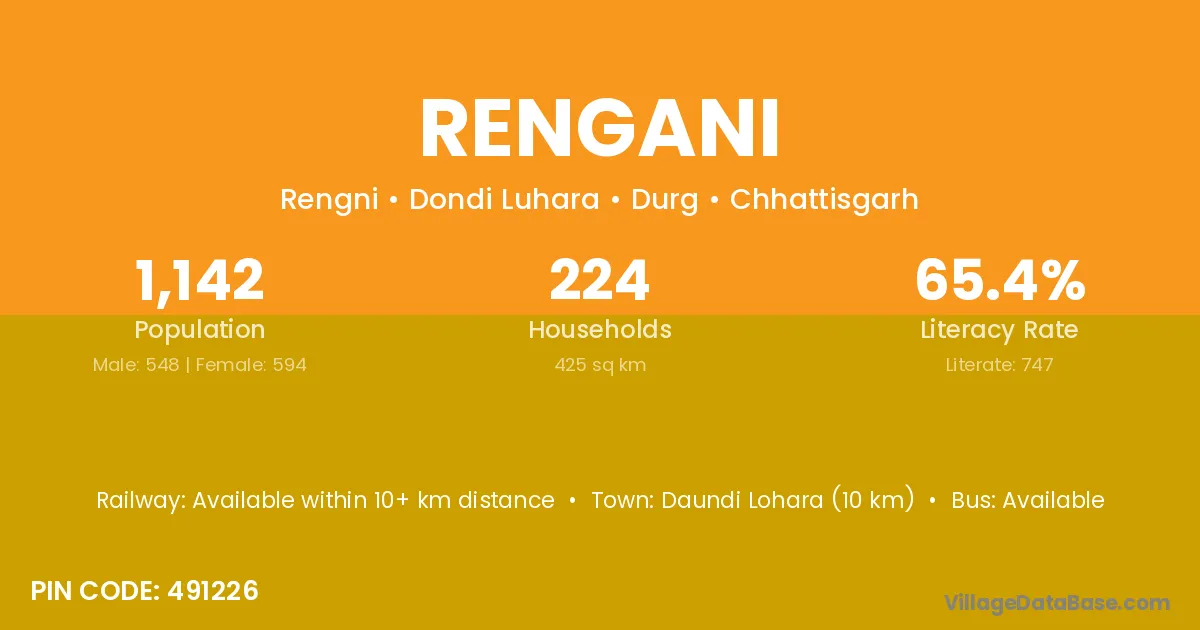 Rengani village is located in the Dondi Luhara Tehsil of the Durg district in Chhattisgarh .