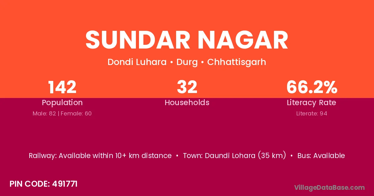 Daundi Lohara (35 km) is the nearest town to Sundar Nagar village for major economic activities and is located approximately 35 km away.