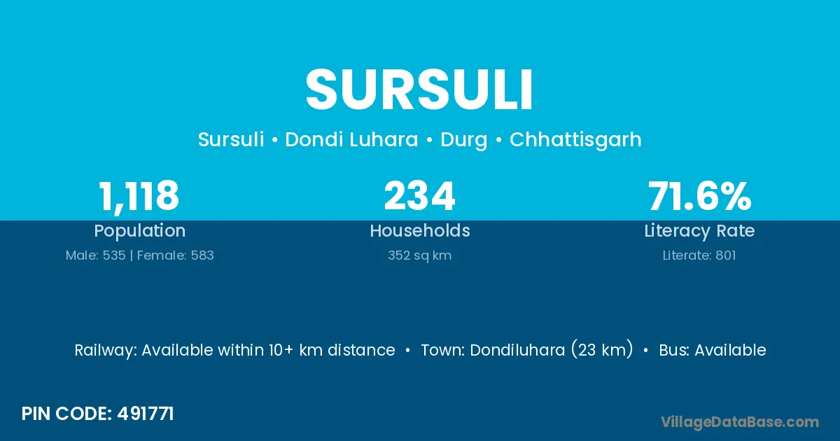 Dondiluhara (23 km) is the nearest town to Sursuli village for major economic activities and is located approximately 23 km away.