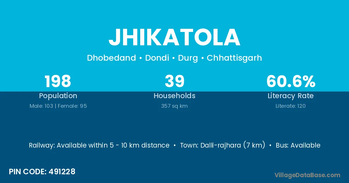 Dalli-rajhara (7 km) is the nearest town to Jhikatola village for major economic activities and is located approximately 7 km away.