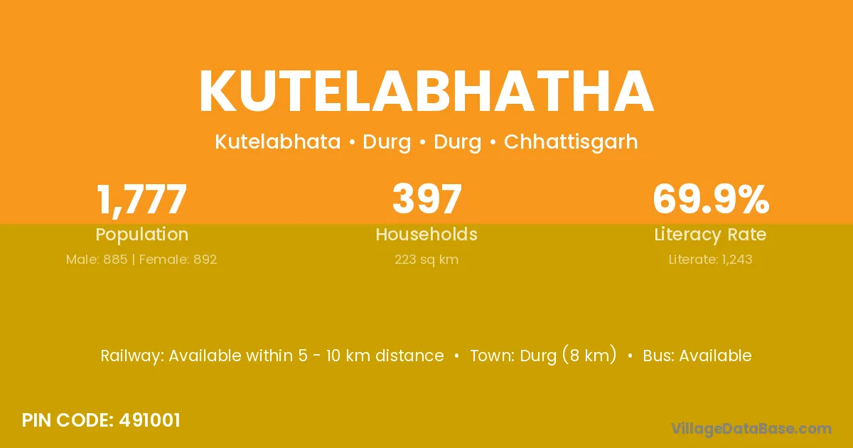 According to Census 2011 information, the village code of Kutelabhatha village is 491001.