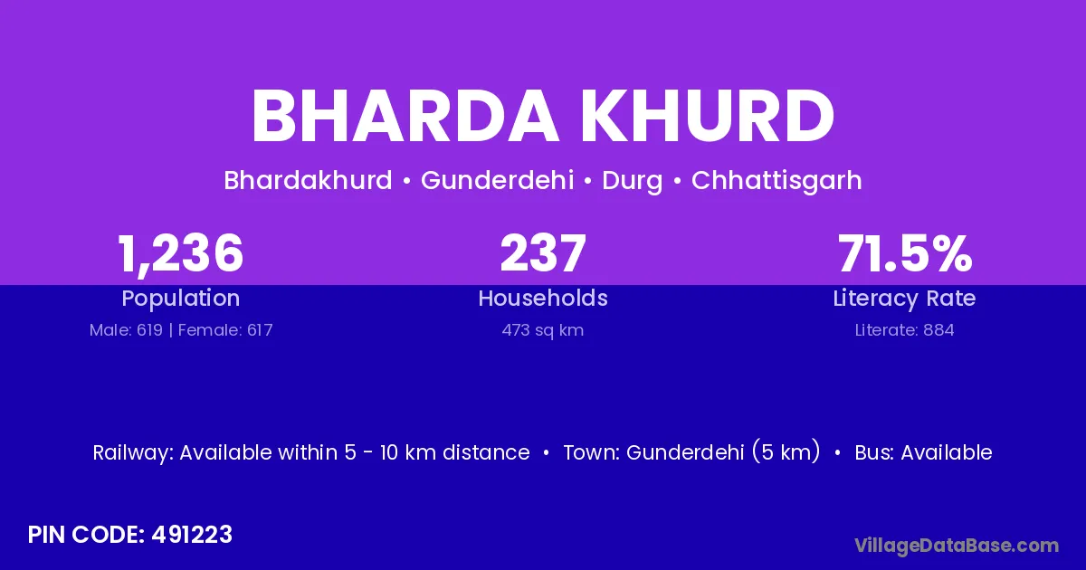 According to Census 2011 information, the village code of Bharda Khurd village is 491223.