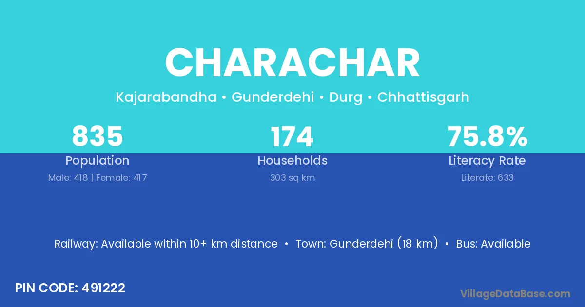 Gunderdehi (18 km) is the nearest town to Charachar village for major economic activities and is located approximately 18 km away.
