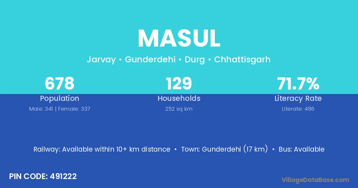 Gunderdehi (17 km) is the nearest town to Masul village for major economic activities and is located approximately 17 km away.
