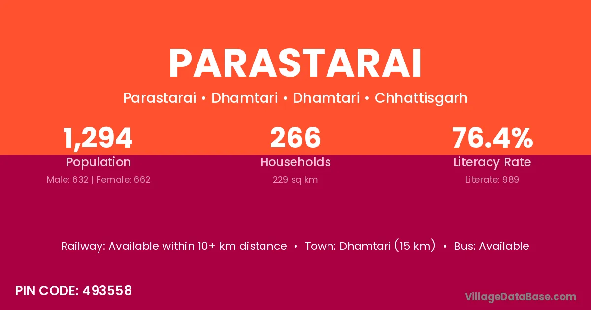 According to Census 2011 information, the village code of Parastarai village is 491225.