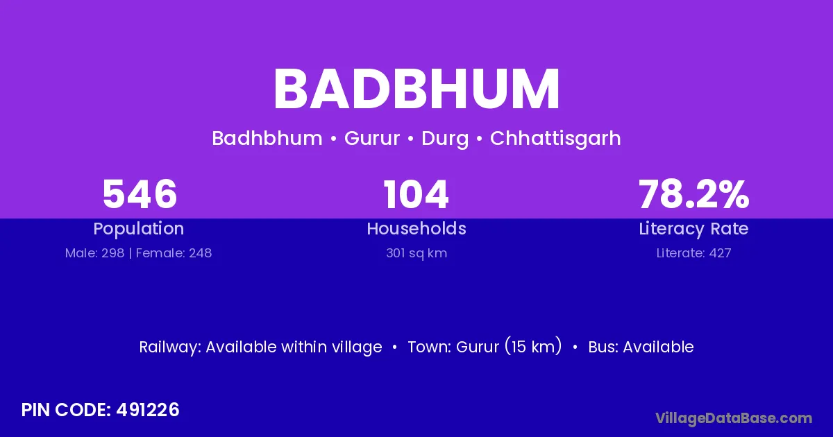 Gurur (15 km) is the nearest town to Badbhum village for major economic activities and is located approximately 15 km away.