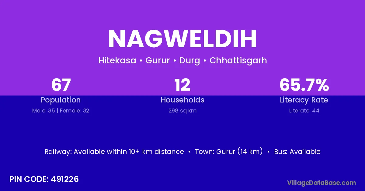 Gurur (14 km) is the nearest town to Nagweldih village for major economic activities and is located approximately 14 km away.