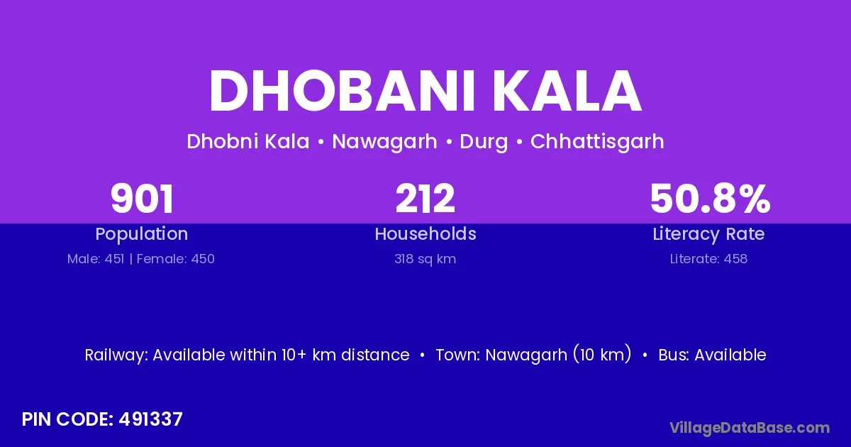 Nawagarh (10 km) is the nearest town to Dhobani Kala village for major economic activities and is located approximately 10 km away.