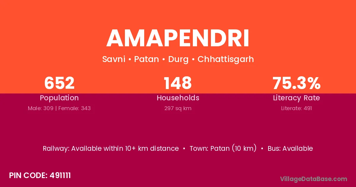 Patan (10 km) is the nearest town to Amapendri village for major economic activities and is located approximately 10 km away.