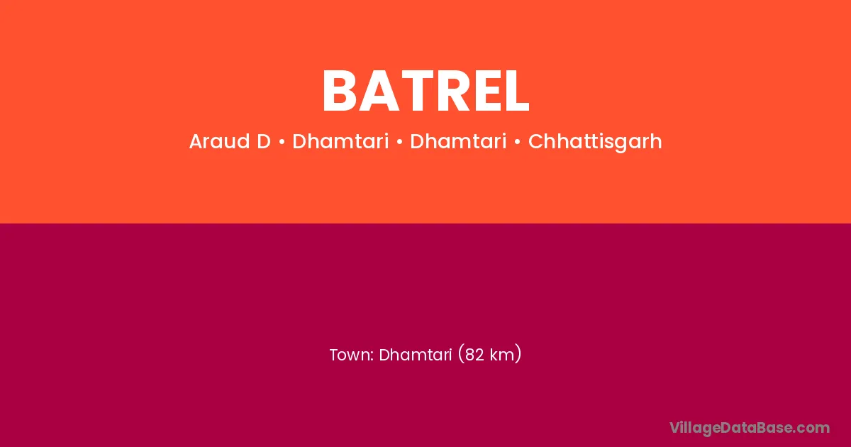 Gunderdehi (18 km) is the nearest town to Batrel village for major economic activities and is located approximately 18 km away.