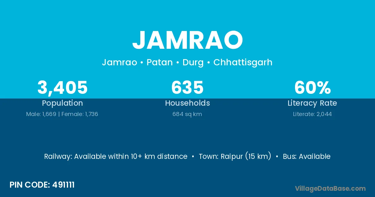 Raipur (15 km) is the nearest town to Jamrao village for major economic activities and is located approximately 15 km away.