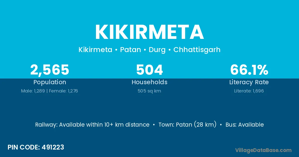 According to Census 2011 information, the village code of Kikirmeta village is 491223.