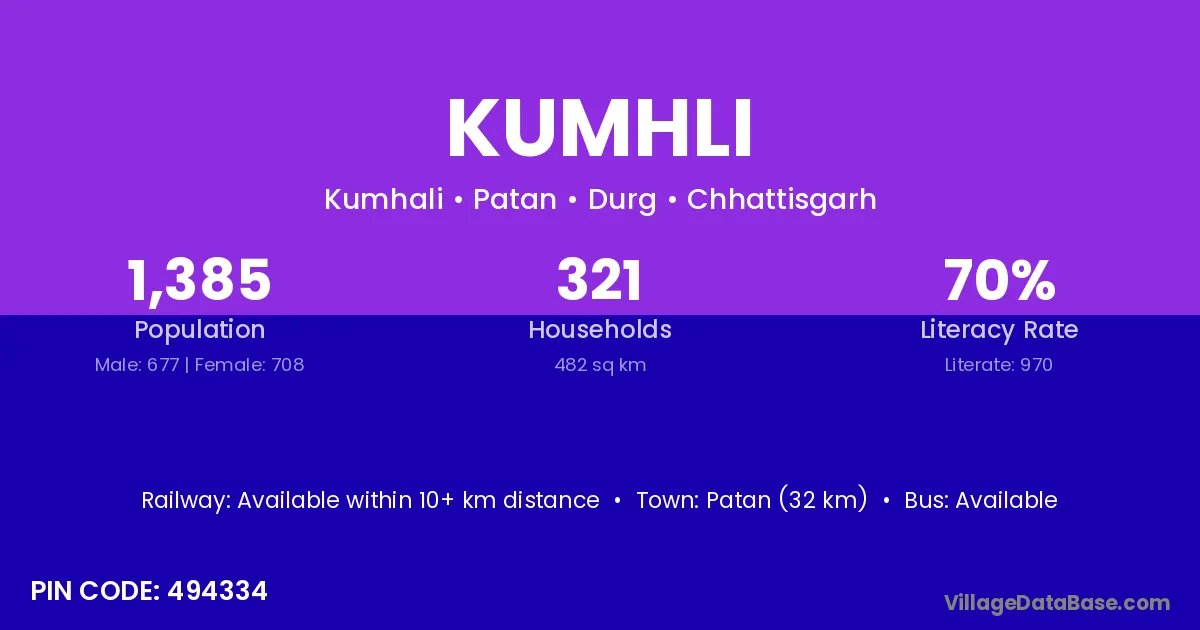 According to Census 2011 information, the village code of Kumhli village is 494334.