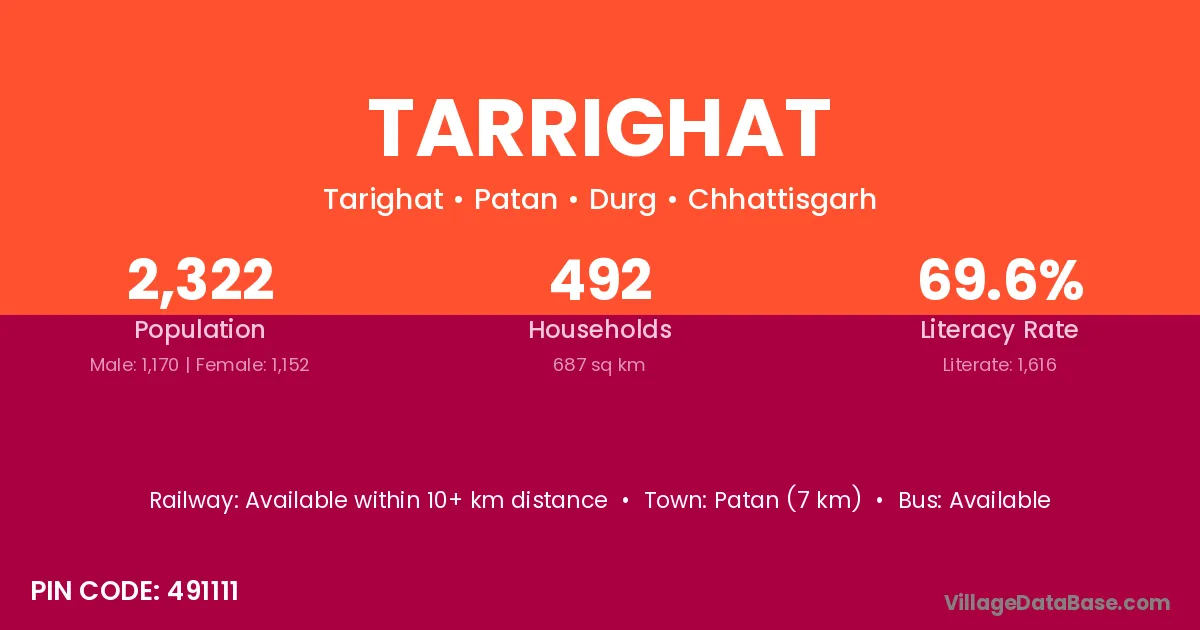 According to Census 2011 information, the village code of Tarrighat village is 491111.