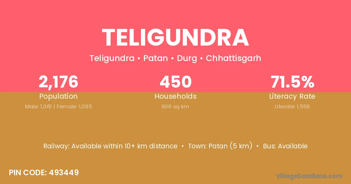 Patan (5 km) is the nearest town to Teligundra village for major economic activities and is located approximately 5 km away.