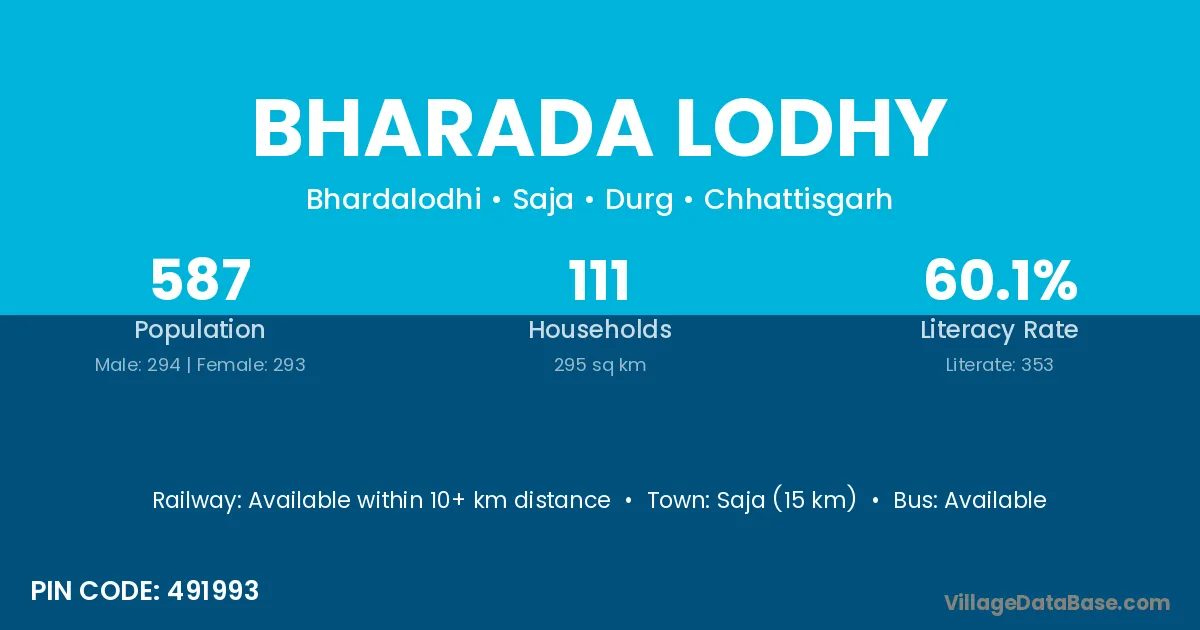 Bharada Lodhy village has a total population of 587 people, of which 294 are males and 293 are females.