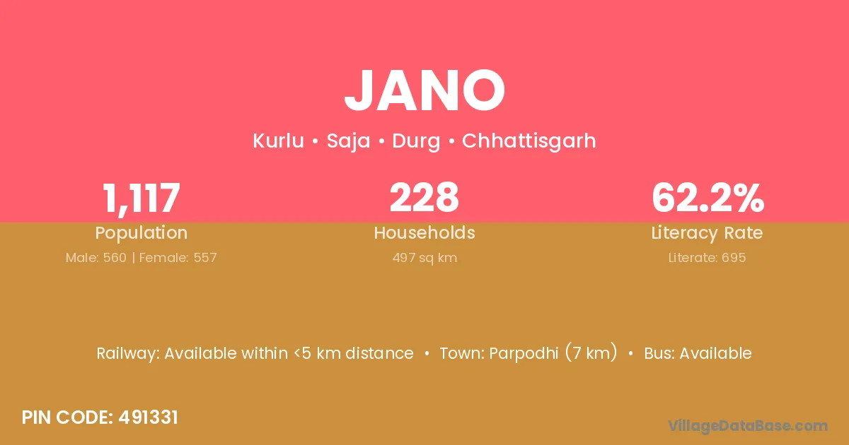 According to Census 2011 information, the village code of Jano village is 491331.