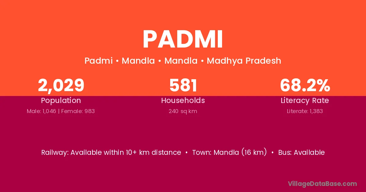 The literacy rate of Padmi village is 60.92%. Male literacy stands at 69.32% and female literacy at 52.30%.