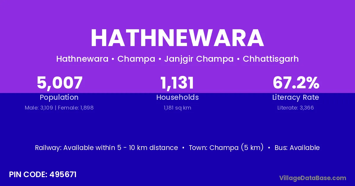 Champa (5 km) is the nearest town to Hathnewara village for major economic activities and is located approximately 5 km away.