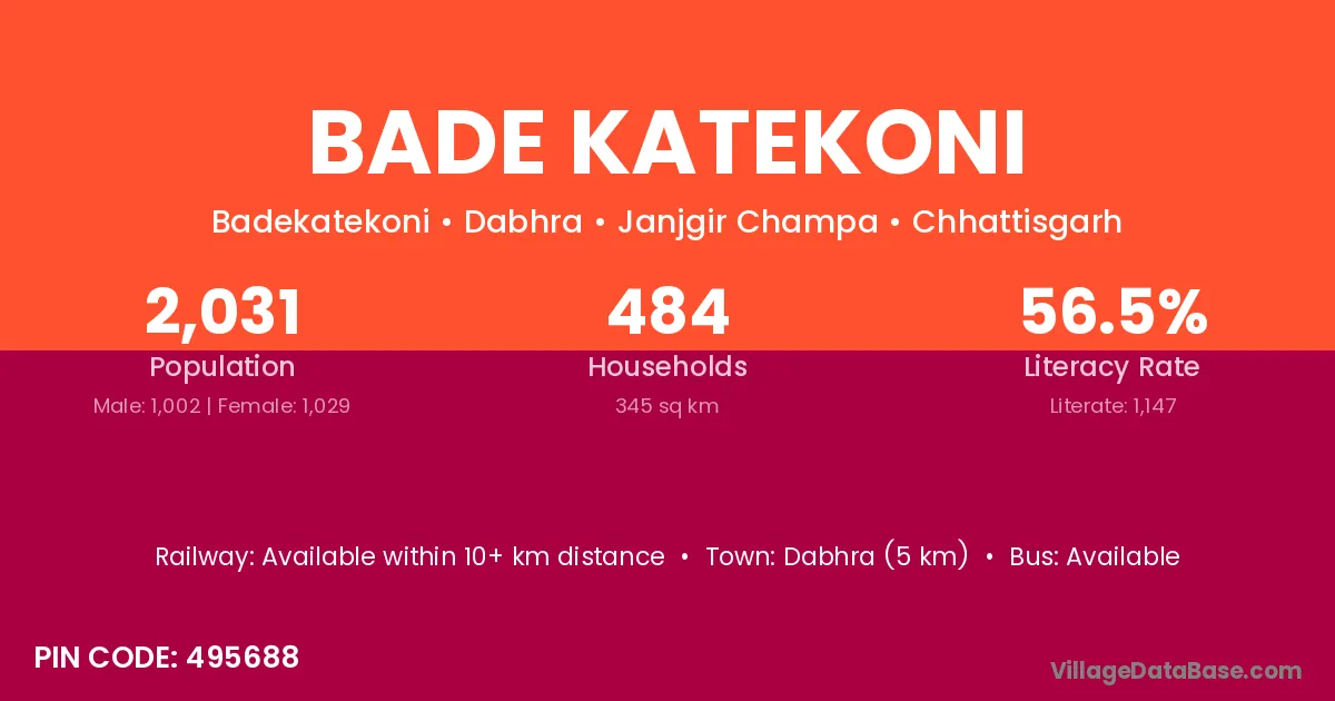 According to Census 2011 information, the village code of Bade Katekoni village is 495688.