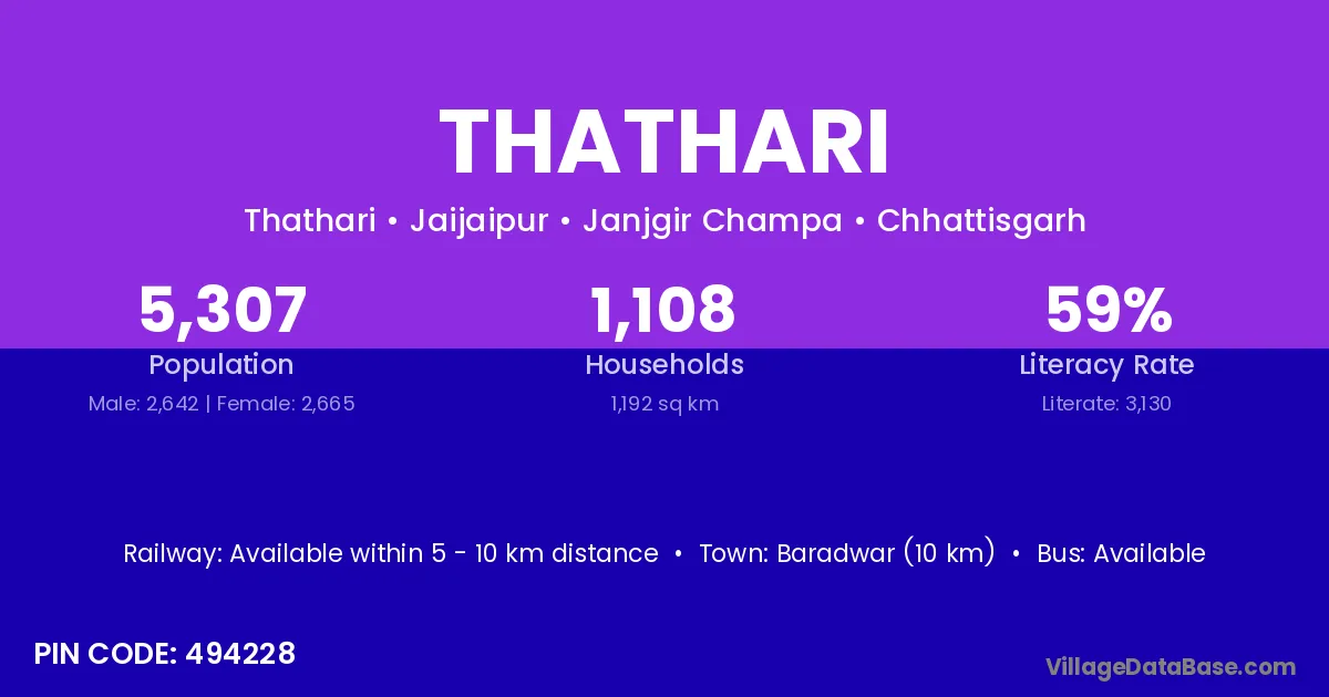 Thathari village is located in the Jaijaipur Tehsil of the Janjgir Champa district in Chhattisgarh .