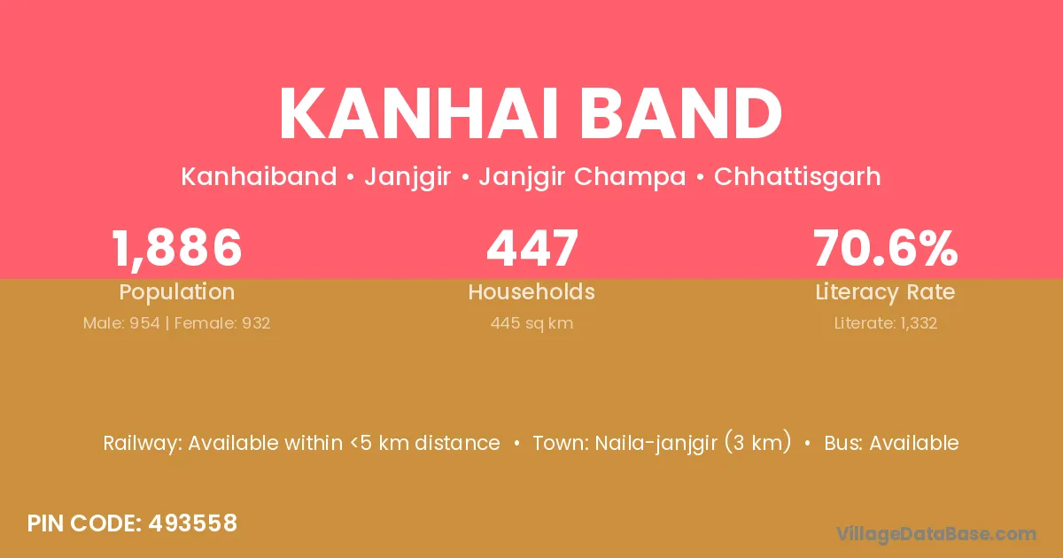 Naila-janjgir (3 km) is the nearest town to Kanhai Band village for major economic activities and is located approximately 3 km away.