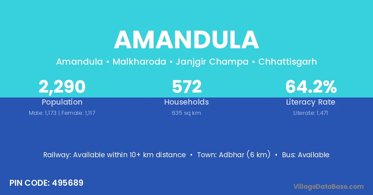 Adbhar (6 km) is the nearest town to Amandula village for major economic activities and is located approximately 6 km away.