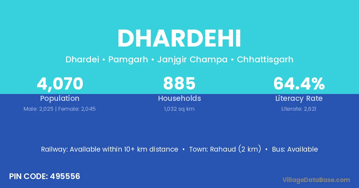 Dhardehi village has a total population of 4,070 people, of which 2,025 are males and 2,045 are females.