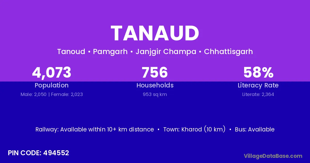 Kharod (10 km) is the nearest town to Tanaud village for major economic activities and is located approximately 10 km away.