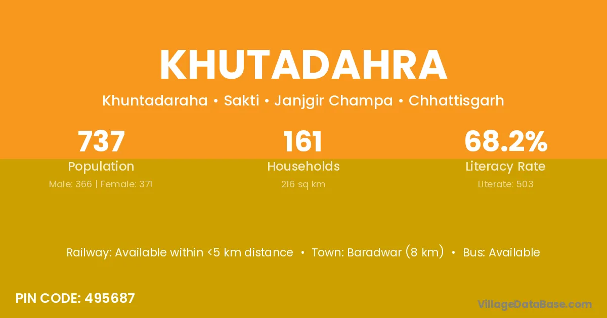 Khutadahra village has a total population of 737 people, of which 366 are males and 371 are females.