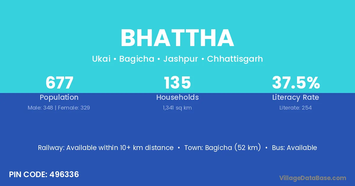 Bagicha (52 km) is the nearest town to Bhattha village for major economic activities and is located approximately 52 km away.