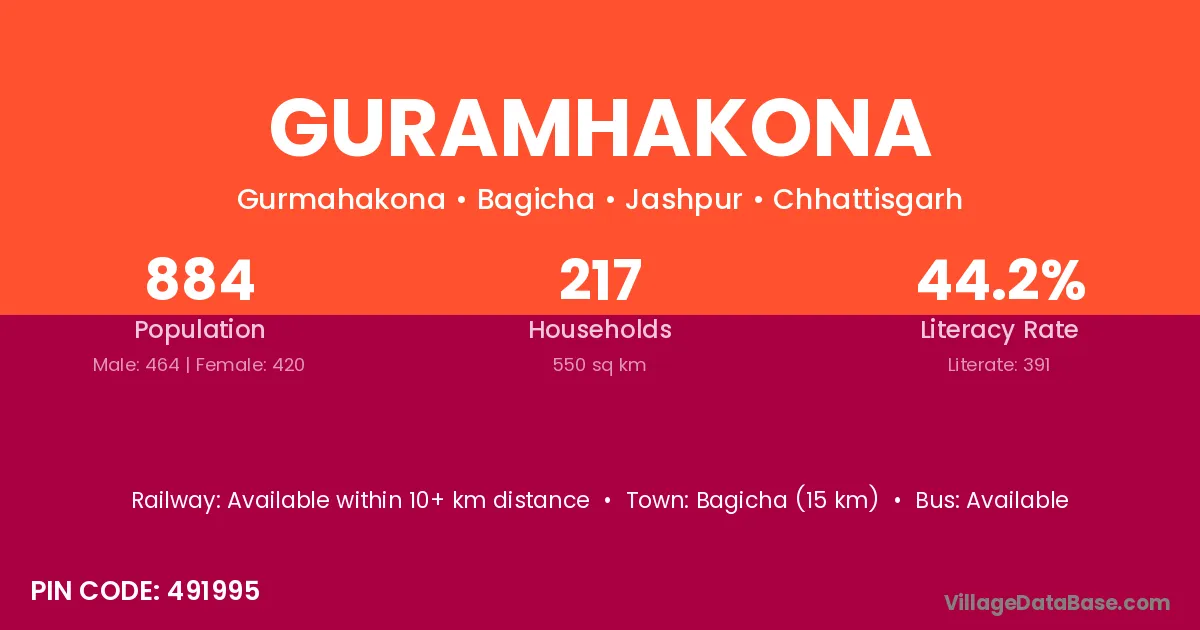 Guramhakona village has a total population of 884 people, of which 464 are males and 420 are females.
