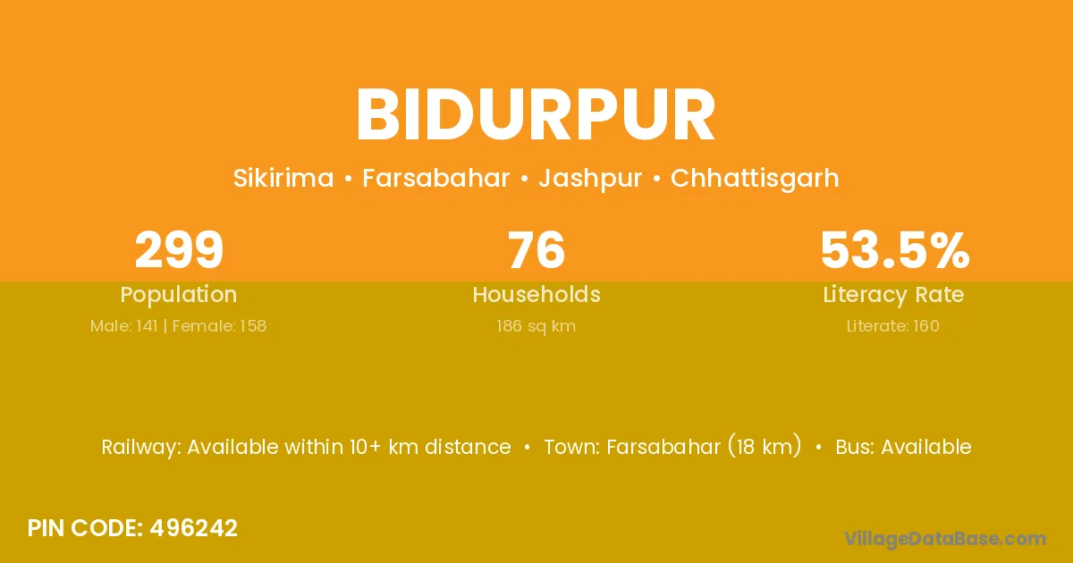 Bidurpur village is located in the Farsabahar Tehsil of the Jashpur district in Chhattisgarh .