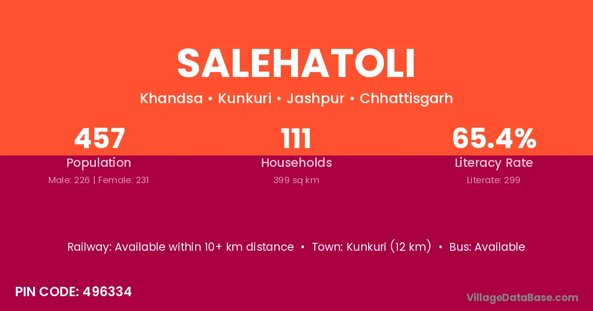 Kunkuri (12 km) is the nearest town to Salehatoli village for major economic activities and is located approximately 12 km away.
