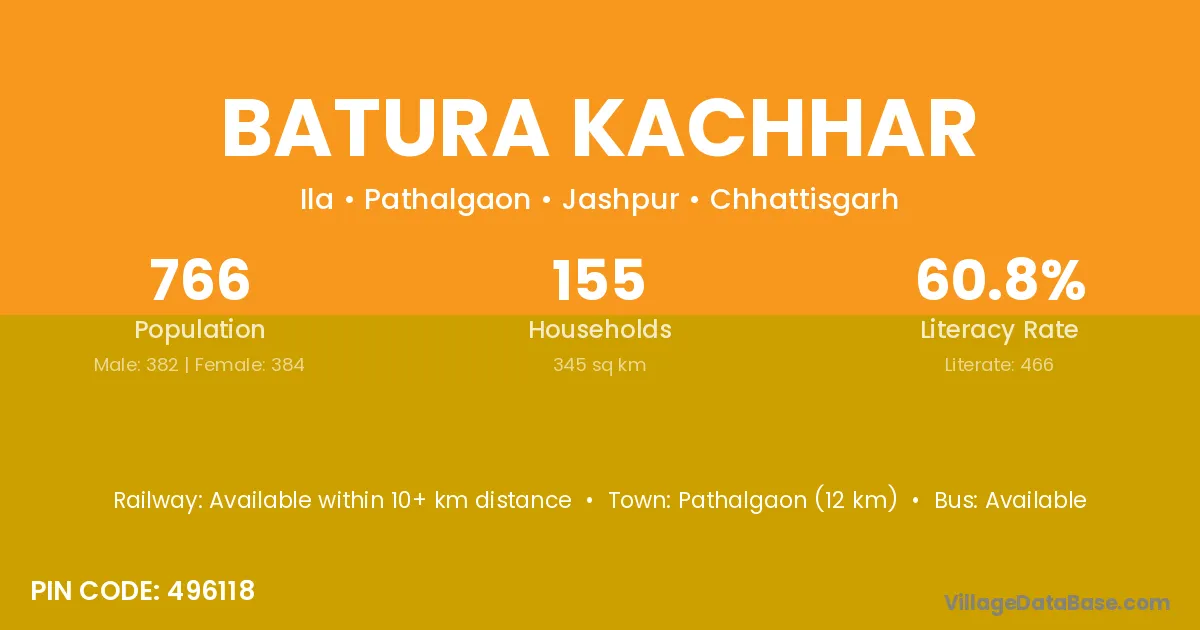 Pathalgaon (12 km) is the nearest town to Batura Kachhar village for major economic activities and is located approximately 12 km away.