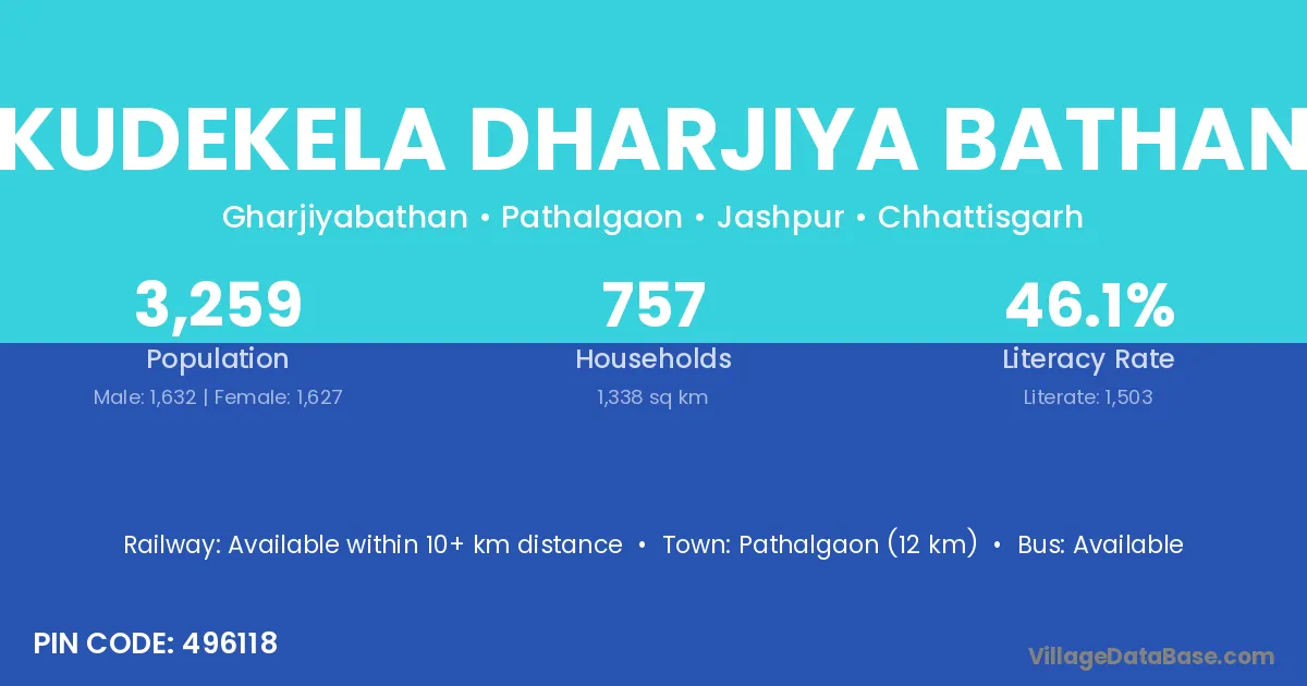 Kudekela Dharjiya Bathan village is located in the Pathalgaon Tehsil of the Jashpur district in Chhattisgarh .