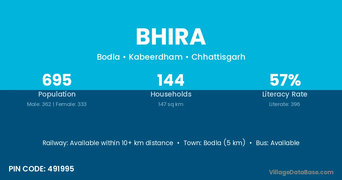 Bhira village is located in the Bodla Tehsil of the Kabeerdham district in Chhattisgarh .