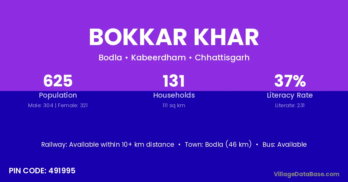 According to Census 2011 information, the village code of Bokkar Khar village is 491995.