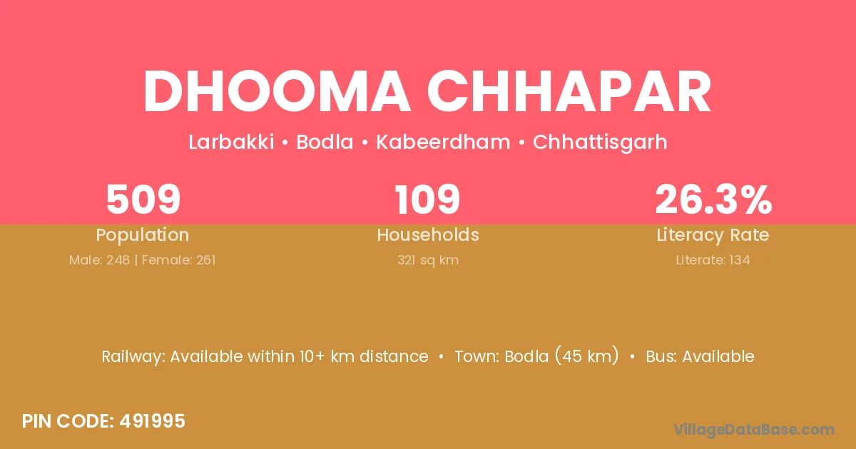 Dhooma Chhapar village is located in the Bodla Tehsil of the Kabeerdham district in Chhattisgarh .
