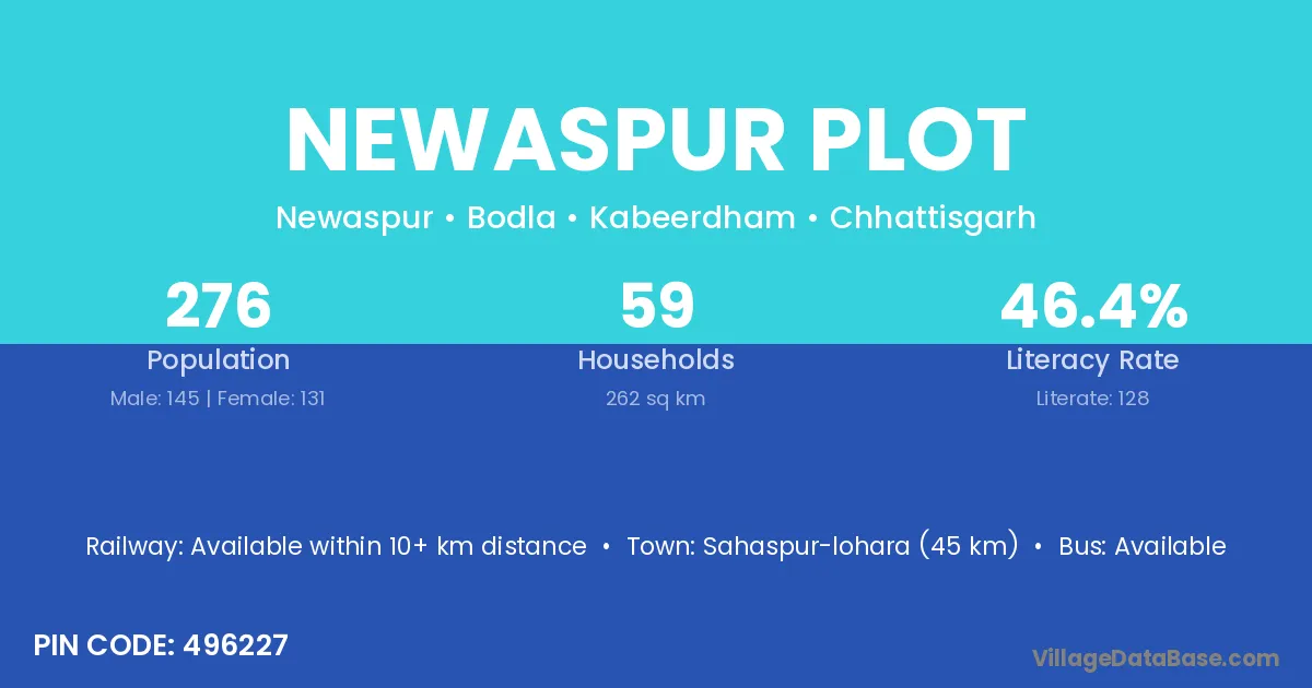 Newaspur Plot village has a total population of 276 people, of which 145 are males and 131 are females.