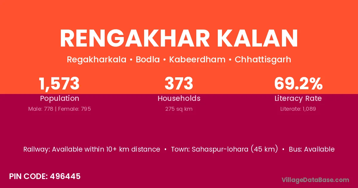 Rengakhar Kalan village is located in the Bodla Tehsil of the Kabeerdham district in Chhattisgarh .
