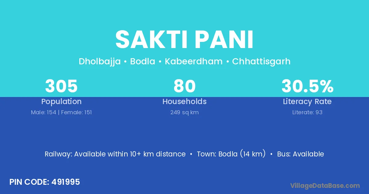 Bodla (14 km) is the nearest town to Sakti Pani village for major economic activities and is located approximately 14 km away.