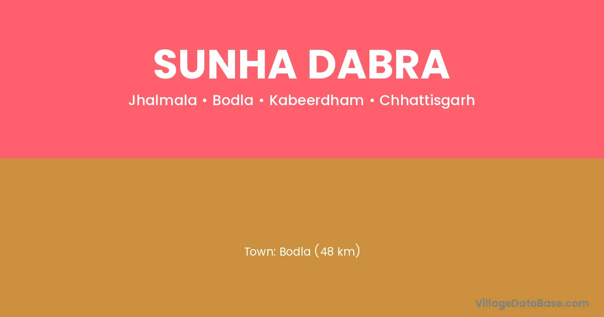 Bodla (48 km) is the nearest town to Sunha Dabra village for major economic activities and is located approximately 48 km away.