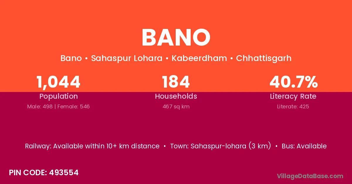 Pipariya (11 km) is the nearest town to Bano village for major economic activities and is located approximately 11 km away.