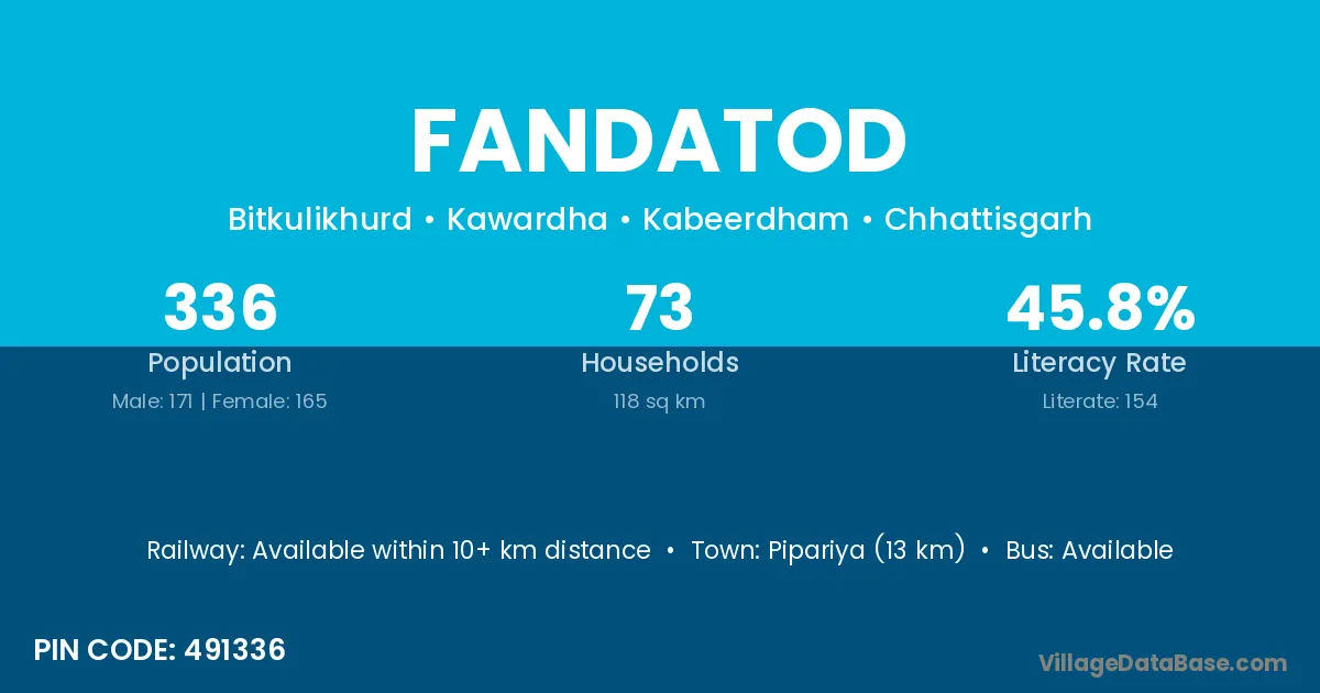 According to Census 2011 information, the village code of Fandatod village is 491336.