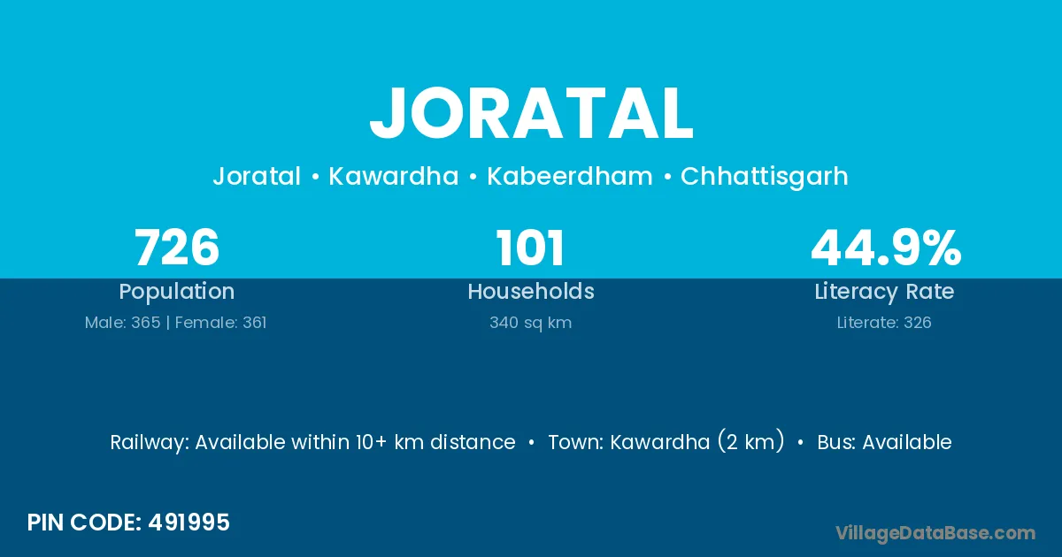 Kawardha (2 km) is the nearest town to Joratal village for major economic activities and is located approximately 2 km away.