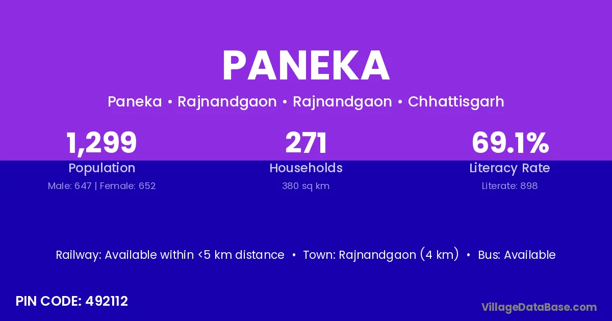 Pipariya (15 km) is the nearest town to Paneka village for major economic activities and is located approximately 15 km away.
