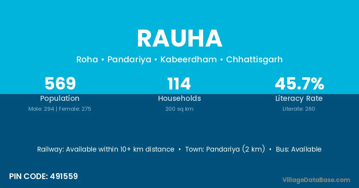 Pandariya (2 km) is the nearest town to Rauha village for major economic activities and is located approximately 2 km away.