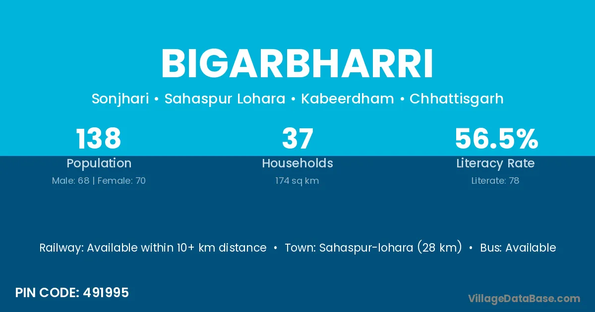 Bigarbharri village is located in the Sahaspur Lohara Tehsil of the Kabeerdham district in Chhattisgarh .